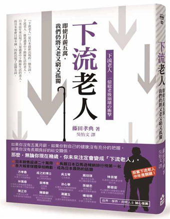 如果有一天,我們因此無法自食其力,能做些什麼扭轉局勢?*「下流老人」是日本最新出現的一個名詞,「下流」,指的是在社會底層,過著中下階層生活的人,下流老人,就是過著中下階層生活的老人。日本近年來出現了大量過著中下階層生活的老人,而且未來會只增不減,因此出現了這個名詞。