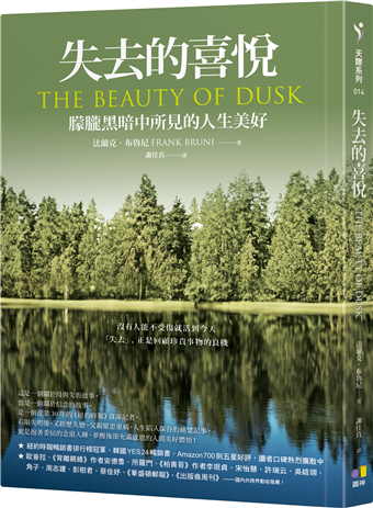 暢銷作家愛瑞克曾提及:人生沒有壞事,我們要找出壞事背後隱藏的好事;故事超人黃瑞仁也提及:在生命的低谷,就是把自己活成好故事的契機。挫折與黑暗看似吞噬我們自信與光明的惡魔,但我們該如何從絕望的幽谷仰光而前進呢?又該如何堆疊生活的善意而逆風飛翔呢?作者法蘭克.布魯尼在《失去的喜悅:朦朧黑暗中所見的人生美好》真誠地透過文墨傳遞給我們真正的生命答案。
