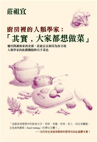 三年前,莊祖宜出了第一本書《廚房裡的人類學家》,寫自己變節叛逃,投筆從刀,放棄博士改做廚師的經歷。初試啼聲,就一鳴驚人,轟動武林,風靡飲食界和文化圈,網民書迷臉友粉絲,紛紛聞香而來,拜倒在她的鍋旁砧邊(我也是一個哩)。大家都拭目翹首,不知道接下來,這個身手不凡的新人,會使出什麼拳腳功夫?也有人等著看好戲:半自傳的可口故事講完了,還有啥花招?