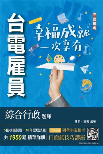 台電雇員在公告考訊之後,往往距離筆試時間僅1~2個月,多數考生難以靠一己之力衝刺速成,為協助考生能以自習與演練題目的方式,迅速累積實力,分數呈現跳級式成長,三民補習班名師特別針對台電雇員綜合行政類科考古題研究分析後,網羅相關聯學科試題,精心編輯而成此一題庫書。
