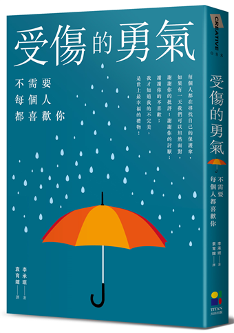 只是我們在做那些事時,難免會付出一些代價,這時,這本《受傷的勇氣》中所提的許多觀念就非常受用了。包括提到了「人都無法擺脫他人的看法與評價,一人是否能不受他人的批評而搖擺,聰明找到自己的平衡,可以看出你在社會上的評價。」