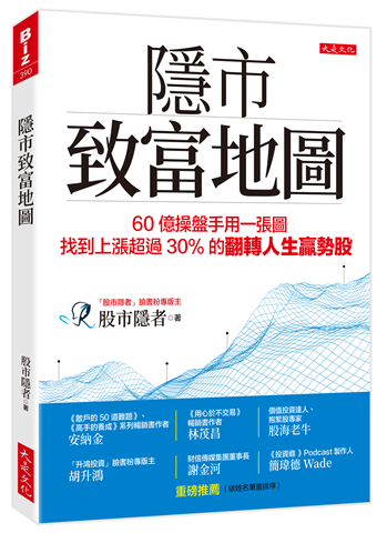第2章,即是呈現完整的隱市致富地圖,並且分享投資必須要會的分析方式,分別是基本面、技術面、籌碼面,也將我在實戰中,同時使用這3種分析的方式,如出一轍的呈現在書中。這些分析股票的要點,是我投資過程中,不斷調整、淬煉,才累積出來的結晶。