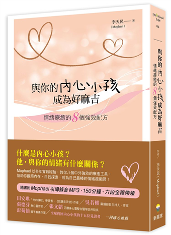 Mophael 的療癒配方,就像是黑暗裡的一盞燈,幫我在理性、力氣用盡仍無法理解成人世界的茫然困惑時,找回那個被遺忘在內心角落的小小孩。Mophael 充滿愛與光的實用策略引導,使我與內心小孩彼此諒解,解開了許多讓我陷溺不前的人生難題。