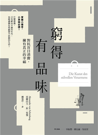 亞歷山大.封.笙堡伯爵之珠璣妙語,讓我們領略到:美好而有格調的生活根本無關乎存款多寡,而富裕往往是擋在幸福前的絆腳石。他在本書中將示範如何不用對衣著、旅行、住宅、汽車撒下大把鈔票,簡單說,如何藉制定優先權來贏得生活品質。本書是份機智與娛樂兼具的生活宣言,反對消費至上,締造更幸福的人生。