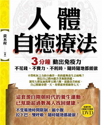 何謂「人體自癒療法」?自己的疾病自己照顧人體本來就具有治癒自體的能力,這套源自隨朝的養生法,主要是運用自力來拉動筋骨與肌肉,每個動作都相當簡單易做,卻能夠刺激穴道、活絡經脈、按摩臟腑、活化新陳代謝。其實有點類似氣功的原理,透過導引全身的氣血通暢,促使原本血氣滯礙的病體重新恢復生機,回到正常運作的健康狀態。「啟動治癒自體的能源,達到身心靈的健康」是此運動的最高境界。「人體自癒療法」讓人們達到「自己的疾病自己照顧」的至高目標,不但可以降低醫療資源浪費、減輕患者財力負擔,還可讓患者有尊嚴、自信、自在、...