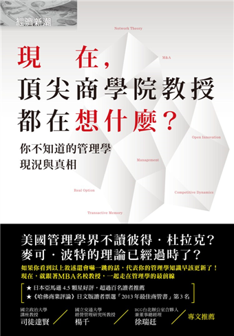 這本《現在,頂尖商學院教授都在想什麼?》是值得大家閱讀與反省的一本好書。作者入山章榮教授在日本成長,完成大學教育後進入實務界工作,然後到美國攻讀策略管理博士學位並留美任教。以其背景來觀察分析美國管理學術界,其角度自然與一般美國學者不盡相同,對我們也更有啟發。