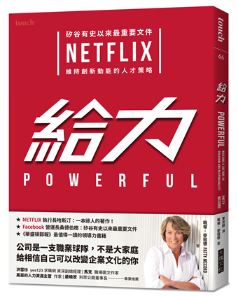 珮蒂.麥寇德生動解說促使Netflix成功的公司文化,凡是想要事業在二十一世紀生存繁榮的人,都應該閱讀本書。麥寇德有渾然天成的說故事長才,她在本書中敘述的Netflix方法──絕對誠實、熱烈辯論、堅決聚焦於未來,這些都是可以幫助組織在二十一世紀勝出的管理實務。本書挑戰我們做出不同於傳統觀點的思考,也敘述許多深具啟發的故事,啟迪我們如何幫助自己及他人發揮最佳潛能。──雅莉安娜.赫芬頓(AriannaHuffington)《赫芬頓郵報》、健康管理新創公司ThriveGlobal創辦人