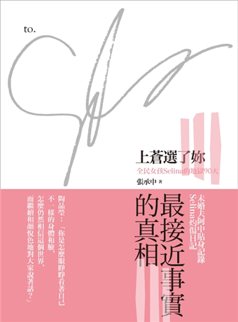 2010年10月22日到2011年1月19日的90天,不知道要怎麼形容的90天,我記了整整90天,拍了整整85天。90天過後到現在,我從一個看感人電影流不出淚的人,變成了一個隨時隨地眼眶可以紅的人。這本書所記錄的90天,只是片段的90天,因為我沒有親眼看到很多過程,也未參與Selina的白天,最重要的是我不是她,再怎麼說,我感受不到完整的一切。