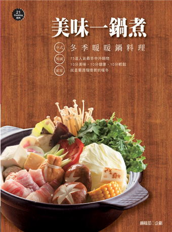 ◎分為中式鍋、異國鍋、家常鍋三大篇章,包括中式經典湯底,以及日式、韓國、東南亞、西式口味,共75道精選鍋類料理。