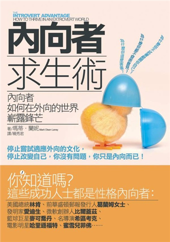 這是第一本全方位探討內向性格的專書,可以具體幫助你: