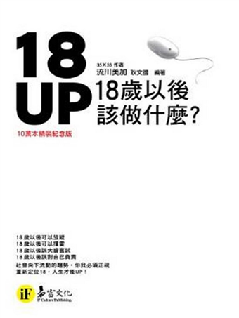 在這變化快速,競爭日益激烈的社會中,18歲以後的你該做什麼?你想過嗎?對你的未來,你有任何計畫嗎?《18UP-18歲以後該做什麼?(10萬本精裝紀念版)》。為你打造了「成功五步曲」,請你依此五步驟,按部就班,一步一步的去實踐,18歲以後的你將不再迷惘,而是充滿希望與衝勁!
