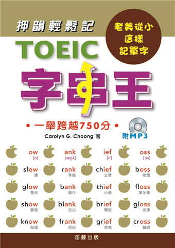 TOEIC必考單字‧用押韻輕鬆記老美從小這樣記單字!你知道美國小朋友是怎樣記單字的嗎?他們除了利用字卡,在上面寫下單字、例句、用法跟同義字之外,也經常利用押韻來記單字哦!他們背單字時,會把單字唸出來,一邊開口唸一邊練習拼字,同時了解單字的意思與用法。對老美來說,押韻的單字因為帶有韻律,就如歌一般容易深植人心,而一再重複的尾音,就是加深記憶的主要原因。本書由《TOEIC節奏聽單》一書改版,為了突顯押韻單字串的重要性,我們將版面做了適當的調整,讓學習變得更簡單。書中利用「押韻分類法」,將押韻的單字「串」在一起,這些字尾發音相同、拼法一樣的單字串就像個大家庭,家中每個成員的外貌都有雷同之處,聲音也很類似,一起把它們學起來、記下來,學習效率事半功倍。在準備TOEIC考試的過程中,背誦單字被視為加強實力的不二法門,只要利用單字串押韻的特性,就可以輕鬆記住,加速提升單字實力。全書依5大母音A‧E‧I‧O‧U分為5大單元,主要特色如下:●以發音為分類依歸,只要開口唸出押韻單字串,或聽MP3中專業錄音員的示範,就能感受單字間流動的節奏與韻律。●利用單字字尾重複的發音,自然而然幫助記憶。●以單字串的尾韻作為標題,並用紅色字標記押韻部分,讀者使用本書時便能一目瞭然。●單字+詞組+句子的組合,由單字漸進延伸至句子,學習一氣呵成。●在TOEIC頻出單字前面加註*號,提醒讀者特別注意。●隨書附有精心錄製的MP3,收錄全書內容。除了一般使用方法之外,讀者可用各種零碎時間,或剛就寢入睡前的片刻,把MP3當成背景音樂來聽,不需特別專注傾聽,固定的節奏與重複的韻律就能加深你對單字的印象,達到有效記憶。