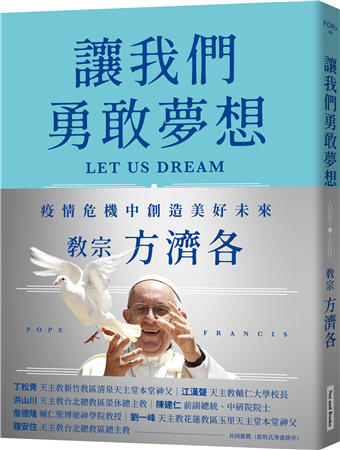 →《讓我們勇敢夢想》是一道行動的號召。本書由教宗方濟各在疫情期間寫成,他對我們發出挑戰,要我們擺脫以自我為中心的生活,多多關注他人,特別是窮人與需要幫助的人——感受他們的痛苦,以恢復他們的尊嚴。他從疾病與痛苦的親身經歷出發,辨別出誘使人僵化和悲觀的「邪惡精神」,以及導向開放和慷慨的「良善精神」。我同意教宗在這本動人著作中所說的一切,並祈禱本書中文版成為危機時期的智慧燈塔。