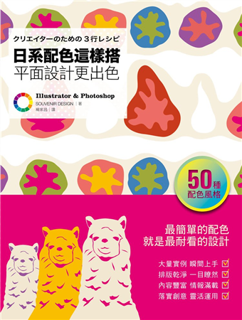 針對不同使用環境與對象,《日系配色這樣搭》有中超過50種設計風格均深具實用性,像是鎖定女性族群的女孩風配色、以辨識性為優先的交通號誌配色、前衛又復古的糖果配色、充滿日式風情的和菓子配色,以及信件、文化配色和適用地區等等,帶領大家一同進入色彩繽紛又專業的配色世界。