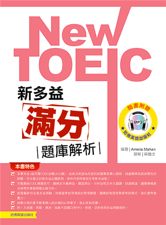 .本書共含3組完整TOEIC試題(600題),由美式英語為母語的試題專家精心撰寫,涵蓋簡單到具挑戰性的試題,符合真正的新多益出題原則,使你作答時就如在考新多益般!