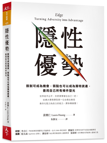 脫穎而出的優勢到底是從何而來?沒有人的條件是完美無缺,每一家企業都有不利的條件與缺陷。在現實世界中,外觀、種族、性別、經驗等都可能形成刻板印象,影響判斷,我們辛勤耕耘很可能因此無法獲得賞識,努力付出卻未能換得等值的回報。如何化劣勢為優勢,黃樂仁發展出一套方法。
