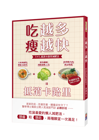 本書不教你如何計算卡路里、如何運動,而是透過「對的飲食方法」進而達到減重效果。「抵消減肥法」,讓你不挨餓、免忌口,也不擔心復胖或是無法持之以恆。