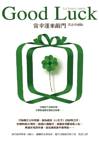 幸運不會自己找上門,必須自己創造環境,才能創造幸運!因此,幸運是否降臨完全取決於你。從今天起,你也可以創造屬於自己的好運!一對失散多年的好友,在偶然的機會下再次相遇──從小家境貧困、無法繼續升學的維克多,如今已是一位傑出的企業家;另一位繼承了大筆遺產的大衛,卻過著窮途潦倒的生活。維克多成功的秘密,就隱藏在他祖父告訴他的「追尋幸運草」的故事中……兩位西班牙知名經濟學家花了三年的時間構思,用八個小時共同寫出這本有趣而動人的書,希望能夠把這些經過驗證的幸運法則,獻給對人生感到不安、不知該如何行動、不知該如何選擇的人,使他們心中種種的不滿與疑惑獲得解答,並且鼓起勇氣跨出第一步,得到自己想要的人生!