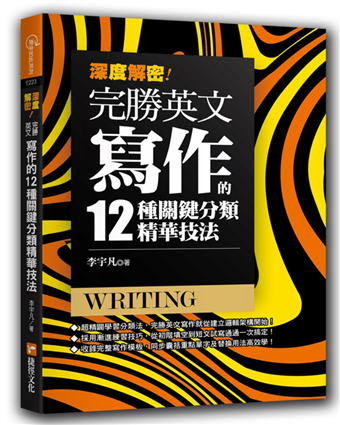 本書依照英文寫作的各大方向,編製出 12 種分類,包括在「敘述說明文」中便收錄「經驗敘述」、「地方敘述」,及「人物敘述」;在「看圖寫作文」中囊括「圖表分析」、「連環圖片」,以及「描寫照片」等,旨在幫助讀者正確架構各種寫作類型的眉角,藉此掌握關鍵得分點,深化學習力度,避免寫出尷尬拗口又不適合該寫作主題的句法,直接從零開始突破!