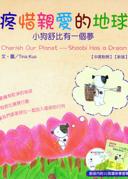 《小狗舒比有一個夢》是一本中英文對照並附注音的繪本,附有DVD,內容為繪本動畫及環保小常識影片。讓小朋友從故事中體會維持環境清潔與環境保護的重要性。寓意深刻,圖畫清爽可愛,適合親子共讀。
