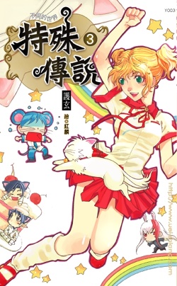 學長拍拍我的肩示意我往上看,我才看見二樓處有個大廣播台,有個兔子耳朵的女孩子正在翻閱手上的資料,她的座位旁邊有好幾個麥克風跳來跳去,一下子線打結又摔在一起,咚咚咚的聲音透過我看不見的擴音器回當在整個市場裡面,「左商店街大特賣,『喬恩』今日推出簡便爆符,讓您不用麻煩在家自己畫,一張在手、暢行無窮;十二張一捆、一打只要五十元卡爾幣,還送您草人插針一個。」