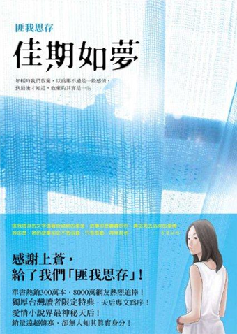 在很長一段時間裡,許多許多讀者都曾經追問我,《佳期如夢》是不是一個真實的故事。我想那是因為,尤佳期是我筆下最接近現實生活的一位女主角。她只是一個平凡又普通的女人,甚至命運對她來講,並不一帆風順,可是她最幸運的地方,就是有兩個男人,深深的愛著她。孟和平和阮正東,他們兩個人也是我筆下最不分伯仲的兩位男主角,他們以各自的方式堅持著自己的感情,正因為是真愛,所以才沒有辦法區分,誰會比誰愛得更多一點點。