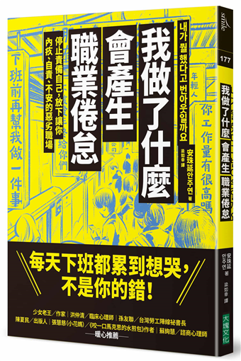 作者安珠延是韓國著名的精神科醫師,在書中他提到,前來就診的患者最常提出的問題是:「我做了什麼會得職業倦怠症?」當我們身心俱疲時,往往先責怪自己,認為是自己的抗壓性不夠、太脆弱、與他人相比不夠認真努力,所以才過得不好。然而事實上,一個高度壓力導致過勞的社會,問題並非來自於個人,而是公司與社會交織形成巨大的壓力。我們活在一個過勞的社會,這個還社會鼓勵我們做到倒下前不能喊累;正因如此,我們才更需要理直氣壯地照顧自己。