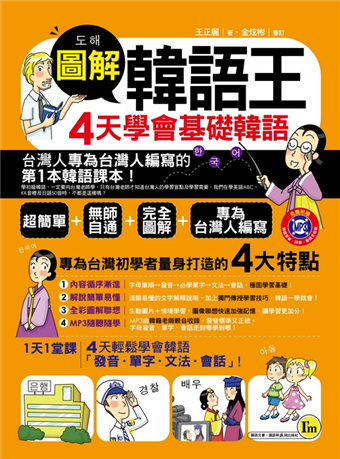 專研韓語數十年,並有豐富韓語教學經驗的王正麗老師,特別針對台灣人學習韓語的盲點和常犯錯誤和金炫彬老師研究解決方案,耗時二年,終於編寫出一套最適合台灣人學習韓語的《圖解韓語王─4天學會基礎韓語》。惟有台灣人替台灣人編寫的韓語課本,才能滿足學習者的學習需求並且幫助其學習最正統的韓語。