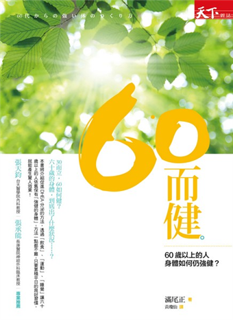 這一本由滿尾正所著的《60而健》,是在強調六十歲以後如何保持身體仍能健朗的方法。他在文中強調的正確的飲食習慣(在台灣要注意不要吃到餿水油),注意攝取維他命B群及D群,以補充身體在六十歲以後容易缺乏的維他命。此外要減少糖份的攝取,這些都是老生常談。