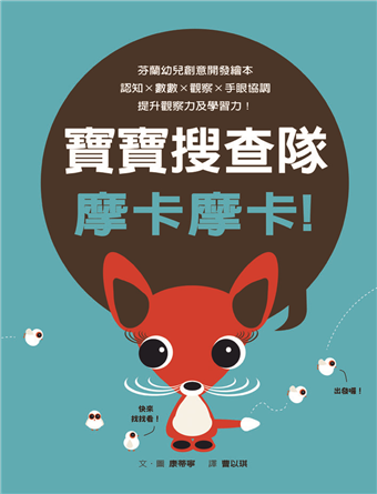 芬蘭幼兒創意開發繪本《摩卡摩卡系列》,是一套全方位的互動遊戲讀物,針對不同需求的訓練分成《寶寶搜查隊》及《寶寶大畫家》兩冊。第一本《寶寶搜查隊》著重於認知訓練,全書以孩子最愛的「找找看」遊戲形式,設計成漸進式的關卡,適合爸爸、媽媽陪著孩子一同快樂學習。