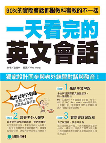 翻開這本書之後,你將明白,用簡短的文字、簡潔的篇幅、輕鬆的步調,就能一目了然教科書上所學的與實際會話上的差別。