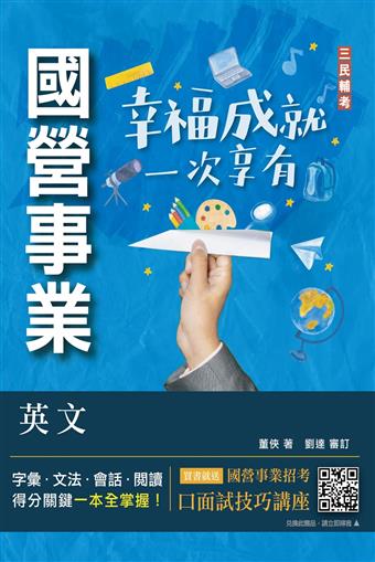這本《英文》適用於報考台電、中油、台水、中鋼、菸酒、捷運、台糖等各大國營事業的考生。