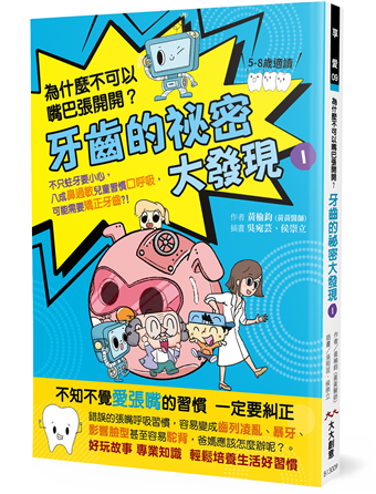 ◆輕鬆故事 專業知識 引導孩子自動自發保護口腔一本適合闔家共讀的牙齒科普故事,有發明高手卻是生活小迷糊的歪博士,以及什麼問題都能回答的小百科機器人,加上專業又有耐心的牙醫香香醫師,搭乘縮小的太空船,帶著小學生兄妹一起完成牙齒的知識探險。在有趣又充滿想像的故事中,帶給孩子重要的健牙知識。