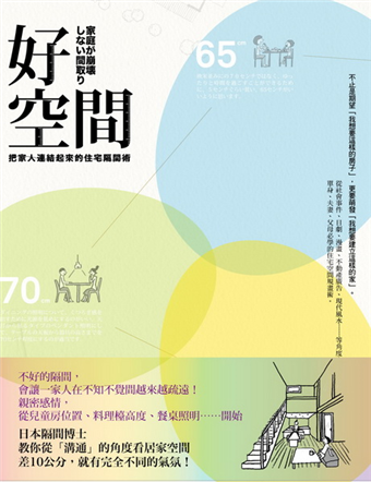 本書從社會事件、日劇、漫畫、不動產廣告、現代風水……中取材,主張「好空間」與坪數、房間數、設備等條件無關,最重要的功能應該是連結家人、展現居住者的生活態度、呼應不同人生階段的需求,以及傳達居住者對未來生活的想法。