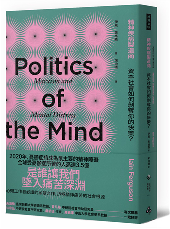 伊恩.弗格森是西蘇格蘭大學社會工作與社會政策學系榮譽教授,也是社會主義傾向的政治活躍分子。他在二○一七年寫就《精神疾病製造商:資本社會如何剝奪你的快樂》(Politics of the Mind: Marxism and Mental Distress),提供有別於主流精神醫學框架的視角與洞見,好讓我們能思索這些儼然已成為當代不可迴避的集體問題。在本書中,弗格森開宗明義地將當代加劇的心理健康危機,歸因於我們生活所在的政治經濟體系──也就是以資本累積而非人類需求為動力的資本主義,據以挑戰「(生物醫療)模式」,今日我們對精神痛苦的主流理論以及專業服務,都是奠基於此,也就是強調精神疾病的根源在於個人的生理性缺損(主要概念化為大腦功能異常),從而正當化藥物與其他諸如認知行為治療等介入形式。