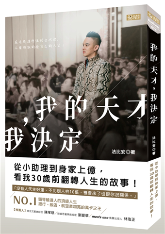法比安說:「財富自由其實很簡單!」獨創的生財之道,讓他在二字頭的時候就能退休,堪稱是最年輕版的 Fire 財富自由。看似不按牌理出牌的他,緊抓兩大原則——善用自己、珍惜時間。關於如何實現財務自由,天才法比安具體寫進了這本書,無私分享歡迎拷貝!