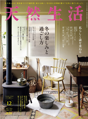 居心地よく整えて 私のあったか冬支度○山田奈美さん 冬から春の和薬膳のお手当て料理○北欧の冬の過ごし方○渡辺有子さんが訪ねる あったか土鍋の魅力○医師が教える一番身近な健康法 健康寿命をのばすお風呂の入り方○解剖学から、ゆる~く学ぶ 楽しく冬をのりきるヒント