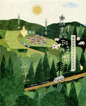 以「農村瓦特幣」為綠能推動作業手冊的繪本主題,藉由比特幣的聯想,親切容易推動,同時透露能源與貨幣的創新概念。農村推動綠能儼如在農村淘寶開發瓦特幣,以瓦特小子作為繪本全篇導覽人物,貫穿全場,在各種場景中穿梭,介紹哪些地方的瓦特幣蘊藏特別豐富。農村綠能推動作業手冊理性硬調的條文基礎上,再疊加軟性感性繪本文案,靠左走讀是一本知性繪本,靠右走讀是作業手冊文。