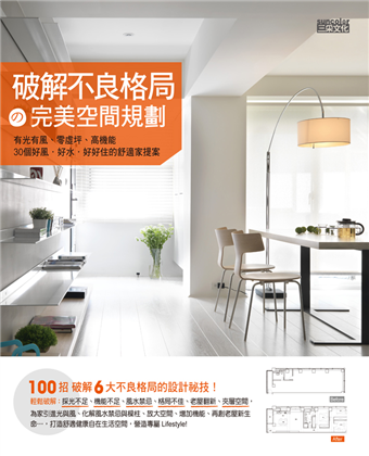 100招破解「採光不足、機能不足、風水禁忌、格局不佳、老屋翻新、夾層空間」6大常見不良格局的設計祕技,到收錄30個破解不良格局的完美舒適個案。從平面圖規劃前與後的對照,到詳列規劃前平面圖的不良之處、平面圖規劃後破解不良格局的設計重點,以至於整體空間的精彩個案呈現與生活風格營造,鉅細靡遺呈現30個破解不良格局的完美舒適家個案。