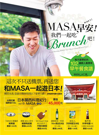 工作忙碌了一星期,想要在周末假日享受悠閒好時光的美味料理,卻不想和別人訂餐廳、搶位子,吃得匆忙與狼狽嗎?現在就跟著MASA來做華麗又奢侈的Brunch吧!本來要到咖啡館、餐廳、大飯店才能夠享受得到的美好早午餐料理,從今天開始,就可以把它端上專屬於自己的餐桌!