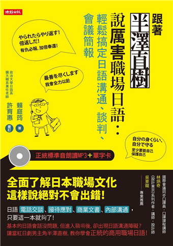 名人推薦:書中引述半澤直樹這部日劇中出現的台詞,對於日文語法與日本文化提供了精準的闡述,值得有志學習道地日文者閱讀,在此推薦給大家!