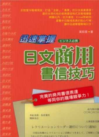 ★從基礎開始寫出完美的書信格式 任何一種商用書信皆有基本的格式,只要依循基本格式,再加上掌握一些許書寫技巧,你也可以寫出一封完美的商用日文書信。商業書信並不像說話,因此在用字遣詞上必須更加倍用心。一封信的完成主要是由開頭問候語、內文、結尾寒喧語等大項所構成,除了想要表達的內文外,其他部分本書詳盡條列出可替代的例句,可直接選擇套用。除了一般比較常見的注意要點外,內容更收錄實用禁忌用語解說。舉例來說在婚禮的賀卡上,千萬不能使用重複性的單字,例如:重?重?、度等,此類字彙在日本的觀念中會讓人聯想到再婚,若是使用不當的單字可是會造成非常尷尬的局面。 ★社內社外書信範例全方位網羅 本書內容將書信種類區分為「社內書信」與「社外書信」。職場書信一般來說比較注重社外書信部分,這類型的書信以業務聯繫為主,包含通知、詢問、承諾、催促、反駁等各種交易性文書範例;但別忘了日本是一個非常注重禮儀的民族,因此除了這些基本的業務性質書信外,書中也包含「社交禮儀方面」的書信,讓大家可以更進一步地維持雙方的友好關係。另外,內文還收錄了社內文書,比如像報告、提案企劃、會議記錄等等,如果身處在日系公司即使是社內簡單的訊息公告,也都是一門重要的學問喔! ★最符合現代性的商務書信格式 目前許多公司為追求效率,公司與公司之間的連絡上已不再侷限於傳統書信、傳真,E-mail逐漸成為聯絡的主要方式。有些人可能會以為E-mail與一般書信的方式相同,其實兩者間只有傳遞上的差異!本書整理一般人容易犯的E-mail錯誤,讓大家認識了解,即使利用簡單的E-mail格式,也能寫出一份得體的日文書信。 現代商務書信的表達已越來越簡潔,著重在主旨重點標示明確的表達方式。本書所套用的範例以目前商業書信趨勢主流,剔除舊有書信中不必要的修辭,讓範例更能符合現代職場趨勢。 ★貼心小叮嚀直接掌握中日職場差異 日本是一個很重視禮貌的民族,即使是像催促的信函,也會使用婉轉的方式呈現,轉個彎用其他的理由來催促對方;因此單元中特別增加「職場小叮嚀」,讓讀者可以更了解中日文化上的差異及書信往來的應對技巧,也讓職場上彼此間的溝通更加順暢。