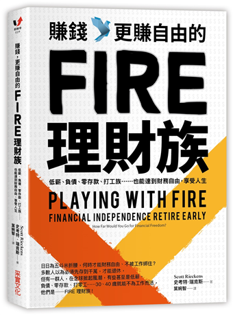 「史考特‧瑞肯斯欣然信奉『FIRE運動』,成效斐然,做出艱難的必要抉擇,激烈改變他家庭的財務未來。想要展開類似生活境地的人,都能曾從此書獲得啟發。如果你覺得困住了,或是無法伸展創意才情,而且過著無法自我掌控的生活,那麼,這或許正是你所需的書。」──史考特.銓屈(Scott Trench),《作主生活》(Set for Life)作者、「大錢包理財」(BiggerPockets Money)播客訪談主持人