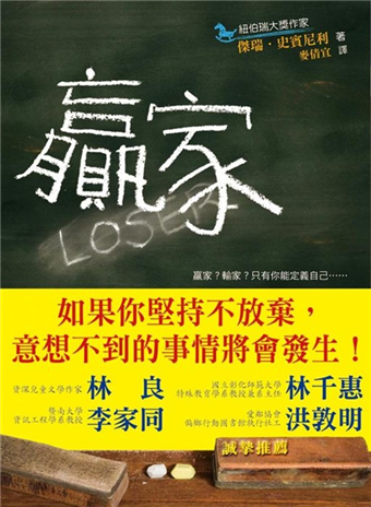 這是一本值得推薦給流連於書店中尋寶的愛書族,或許不經意地瀏覽羣書間,發現了這本封面明明寫著大大英文字「LOSER」的新書,卻出現了一個大相逕庭的中文書名:「贏家」?在好奇心的驅使下,您悄悄地打開了第一章,短短的三段文字,誘使您接著讀了第二章、第三章……您終於發現,這並不是一本教導您如何變成贏家的教戰手冊,卻能在完全不說教的情況下,悄悄地改變了您對人生輸贏的論斷。