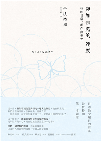 是枝裕和用書名《宛如走路的速度》標舉他的創作手痕,影迷循線看片,應該就能窺見他的創作精髓,這是他送給影迷的小禮物。導演的書寫一如電影書,總是讓人見窺見其心思,繼而得見其心法,本書中,當然亦有這種功能。