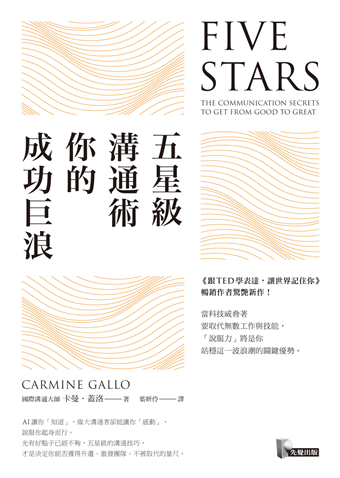 本書訪談了劇作家、神經科學家、經濟學家與 Google、Nike、Airbnb 等世界級巨頭企業負責人,以第一手素材讓你掌握溝通說服的獨門技巧,探知表達能力的差距所帶來的影響。想要在AI世代擁有競爭力的專業人士,不管是創業、職涯規劃,或做出創新改革,都需要學習「五星級溝通術」,激發感動、催生行動,說服其他人支持你的構想!