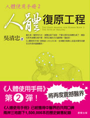 第一本《人體使用手冊》自出版後,台灣地區銷售超過二十多萬本,大陸地區亦已銷售達一百多萬本。本書是作者以科學方法,顛覆所有我們一般對中、西醫的認識 ;其中,他用系統化的角度,讓我們首先認識自己的身體後,進而了解人為什麼會生病,以及如何保養身體等。