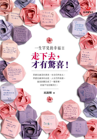 《一生罕見的幸福II:走下去,才有驚喜!》這本書是續集,也是晉級。書中進一步記錄了巫爸一家續航於充滿更多挑戰的生命進程,在堅定宗教信仰的支持下,以及親情、友情溫暖的環繞下,同心協力將生命內涵推向更深遠也更寬廣的境界。其實病痛還在,辛苦更不在話下,但是因為豁達、因為轉念,所有的挑戰與試煉終究成為滋養生命內涵的養分。