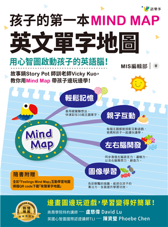 教孩子認識英文單字是許多現代父母常做的事,因為可以讓孩子對英語產生熟悉感。MIS出版社特別製作並推出《孩子的第一本Mind Map英文單字地圖》,透過心智圖的方式,幫助孩子記住日常生活中各種類別的單字。除了每個主題的單字都有連結性,可以讓背英文單字變得更加簡單、快速之外,還搭配色彩繽紛的插圖,更能引起孩子的注意力,輕輕鬆鬆為孩子打造雙語學習環境。