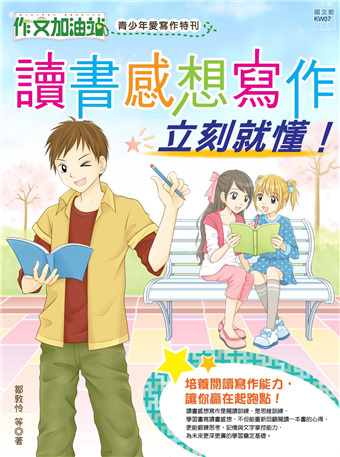 培養閱讀寫作能力,讓你贏在起跑點!讀書感想寫作是閱讀訓練,是思維訓練,學習書寫讀書感想,不但能重新回顧閱讀一本書的心得,更能鍛鍊思考、記憶與文字掌控能力,為未來更深更廣的學習奠定基礎。本書包含三大部份,第一部份為「秘訣分享」,教授讀書心得寫作的秘訣,並以心理測驗小遊戲切入主題,引發讀者的興趣。接著以十大步驟按部就班,舉例說明讀書心得應寫哪些內容。包括:一、 認認真真的讀完一本書二、 以精簡的文字交代書本的內容三、 針對某一個情節發揮四、 想像自己是書中的角色五、 和自己的生活經驗相連結六、 寫出心中的真正想法七、 寫出客觀的評論八、 寫出自己學到的東西九、 寫出自己因為閱讀帶來的改變十、 當個真誠的推薦者第二部份為範文欣賞,精選國中、小學生得獎範文,讓讀者觀摩學習。第三部份為文字加油,讓讀者實際運用前面所學的技巧來練習寫作。並包含專欄,介紹有趣的文字遊戲。